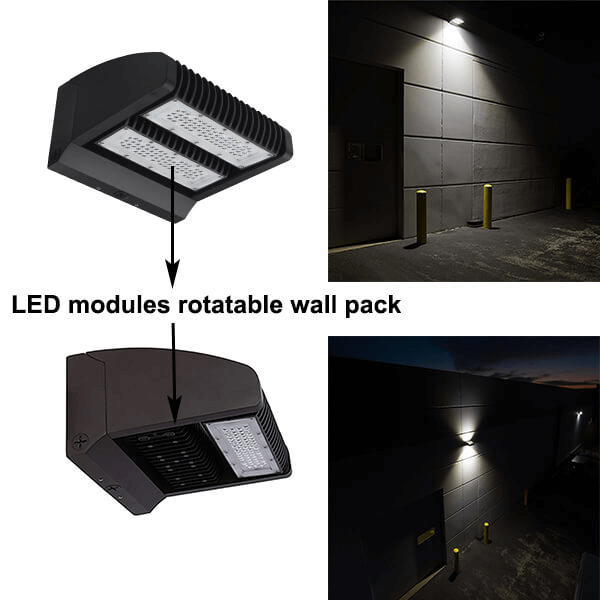 Some wall pack head is adjustable, while some LED modules can be rotatable from up to down lighting. To some degree, it can be used for full cutoff wall pack or semi cutoff wall pack.